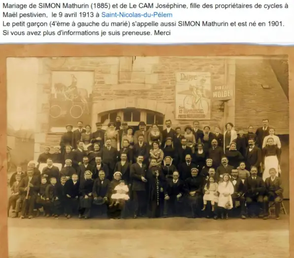 L’image ci-dessus illustre ce qu’était un mariage en 1913 dans le pays de Mael-Pestivien d’où est originaire ma grand-mère maternelle. Mathurin SIMON fait partie de mes ancêtres. On retrouve ce point dans le texte qui suit.